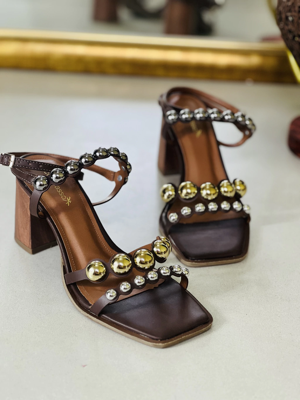 Sandália com Aplicações em Pérolas e Salto Bloco Eleve seu estilo com esta sandália única, que combina elegância e conforto. As delicadas pérolas agregam um toque sofisticado, enquanto o salto bloco fachete garante estabilidade para o dia todo. O fecho em fivela proporciona ajuste perfeito, ideal para eventos especiais ou looks casuais.