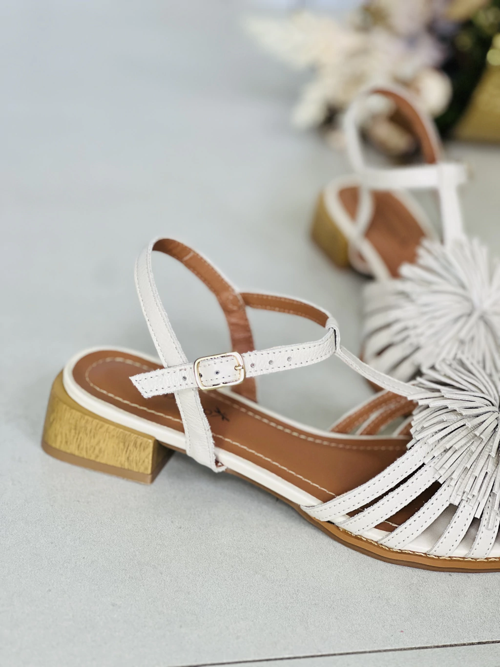 Você está pronta para arrasar? Com recortes em tiras e um lindo detalhe de pompom, essa sandália é a combinação perfeita de conforto e estilo. O bico folha deixa seu pé ainda mais charmoso e o salto fachete baixinho garante que você não desmaie no meio da pista de dança! O fecho em fivela é só para te lembrar que a única coisa que você deve soltar é a sua alegria. Aposte e vença com estilo!