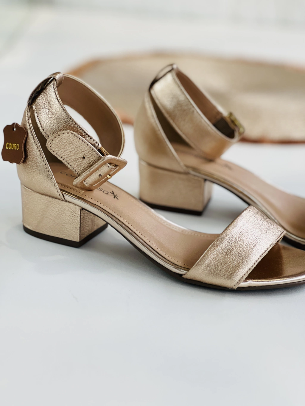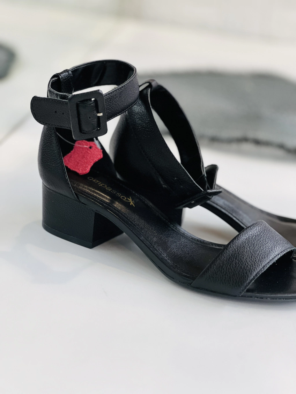 Sandália Feminina Couro Saltinho Bloco Baixo Calcanhar Fechado - Fecho Fivela