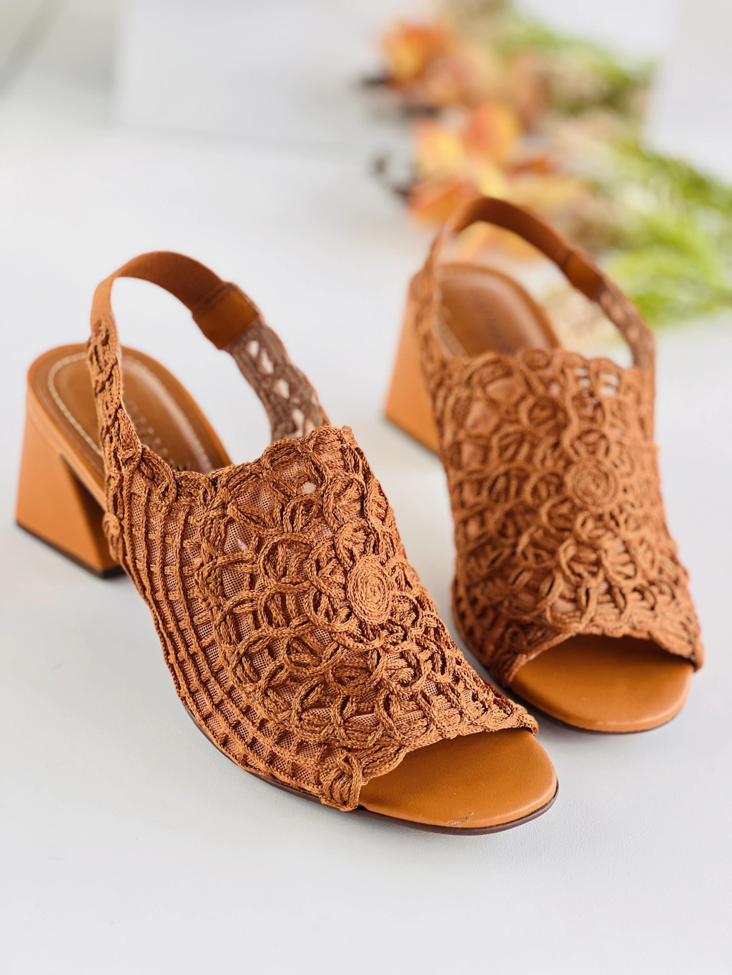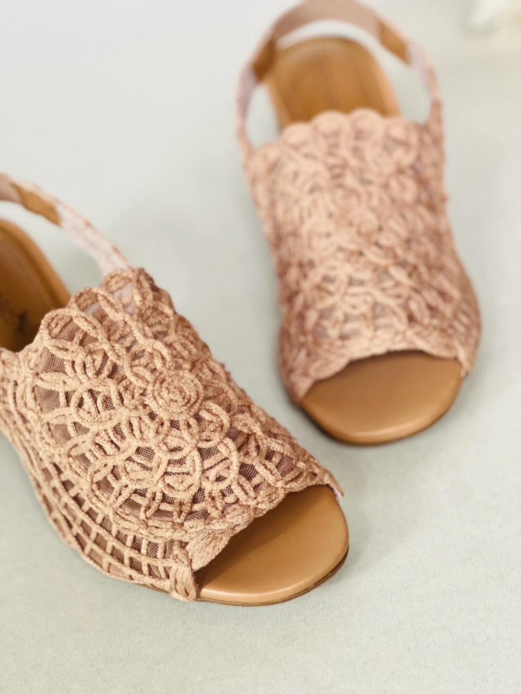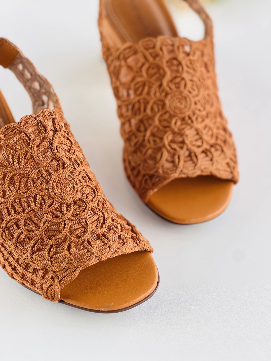 Sandália Tramada Bordada em Linho Salto Bloco com Traseira em Elástico
