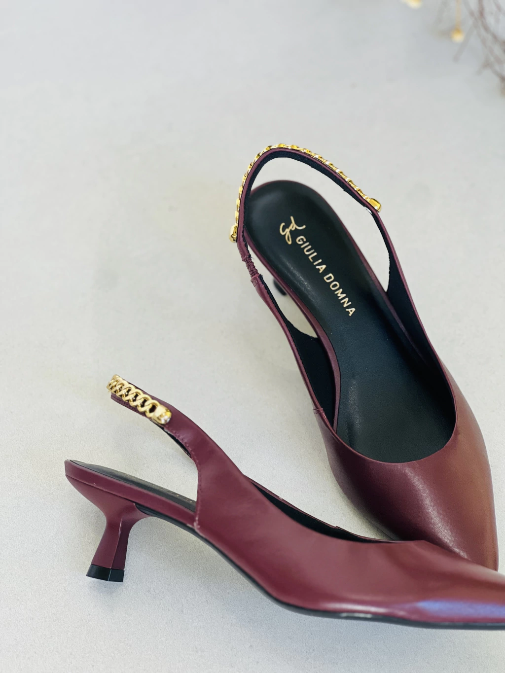 Slingback Bordô em Couro | Salto Baixo | Bico Fino | Giulia Domna