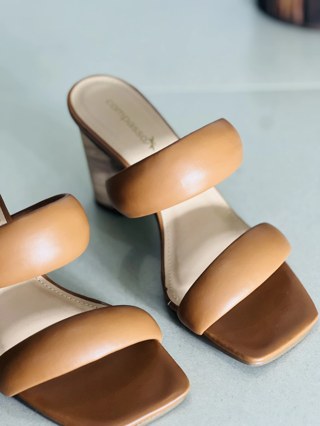 Tamanco Summer em Couro com Tiras Largas e Salto Alto Encapado